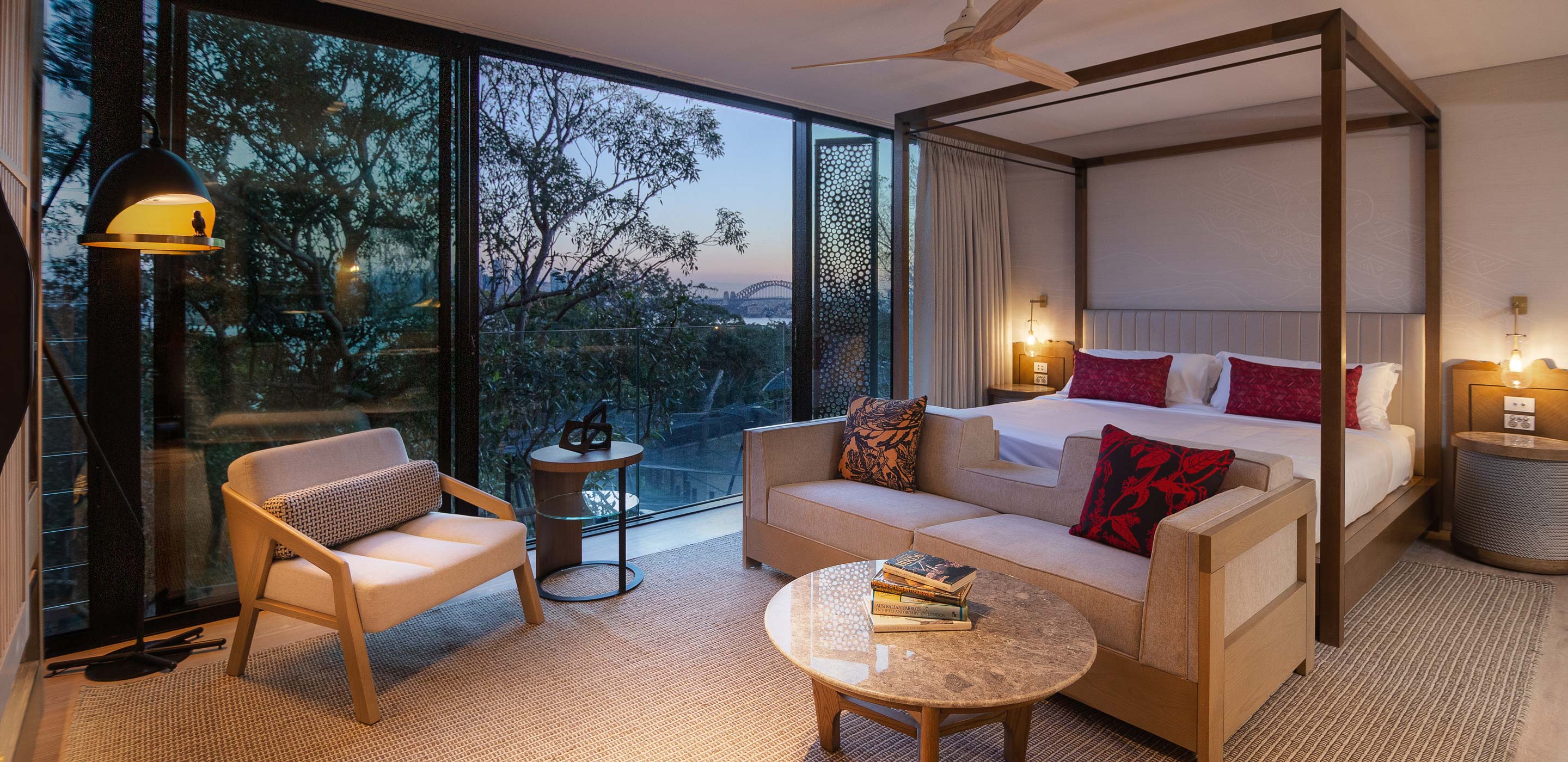 Wake up to a golden sunrise extending over Taronga Zoo Sydney and out across the glistening harbour, Sydney Opera House and Sydney Harbour Bridge.